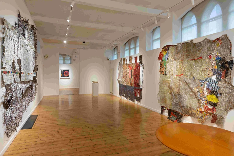El Anatsui, TimeSpace 2023. Exhibition view at October Gallery.. Credit: © El Anatsui. Courtesy October Gallery, London. Photo Jonathan Greet.