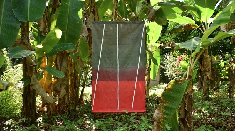 Felipe Mujica, a Chilean artist, exhibits textile pieces created during his 2019 residency in Isla Mancarrón, Nicaragua. Developed collaboratively with local artisans, Mujica’s hanging “curtains” incorporate hand-dyed fabrics and geometric motifs painted with island craftspeople. These fabric works function as spatial interventions and social artefacts, highlighting Mujica's ongoing exploration of geometric abstraction and participatory art practices, often rooted in local traditions.