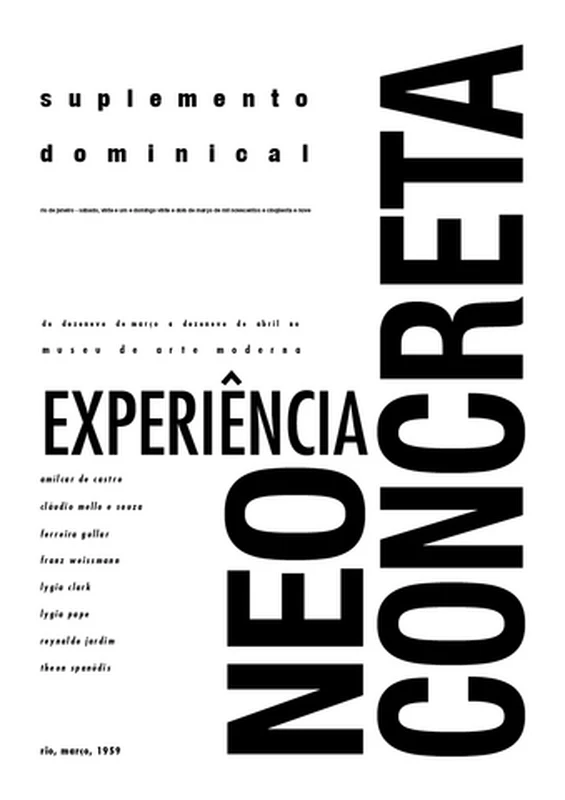 To celebrate the 50th anniversary of the Neoconcrete art movement, this exhibition focuses on the principle platform for the dissemination of Neoconcrete concepts and critique between the late 1950s and the early 1960s: the Sunday supplement of the Jornal do Brasil newspaper. The exhibition highlights how not only the content put also the layout of the supplement were radically changed by the contributions from avant-garde artists, poets, designers and art critics.