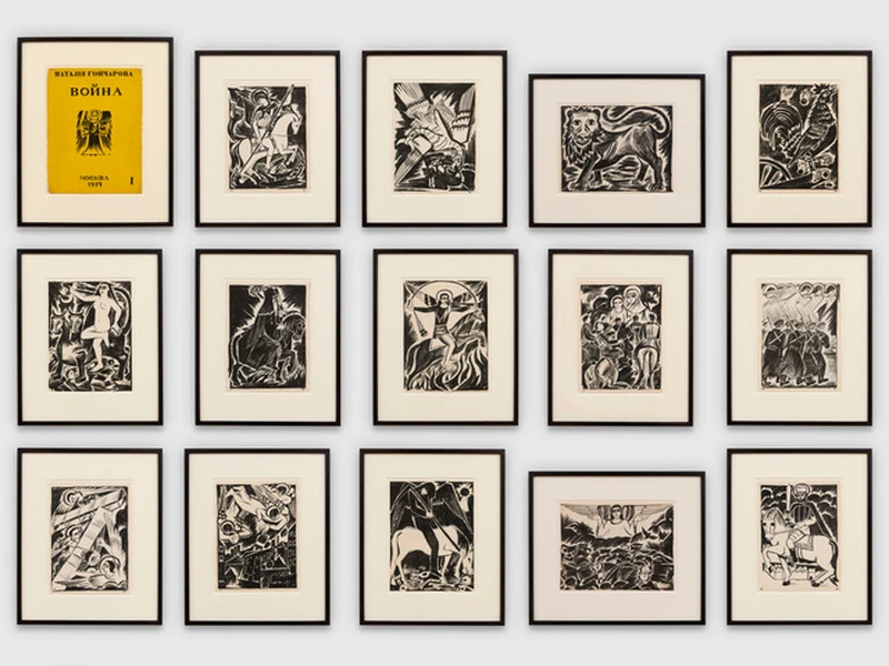 ONLINE EXHIBITION: Our June online exhibition celebrates the trailblazing modernist artist Natalia GONCHAROVA and other female artists of the Russian avant-garde. Coinciding with Goncharova's first retrospective in the UK at Tate Modern (6 June until 8 September), this digital presentation champions the female artists who, despite sitting on the edge of art history with preference often given to their male counterparts, emerged with some of the most radical and progressive ideas of the 20th century. Alongside Goncharova's 15-part piece Misticheskie Obrazy Voiny [Mystical Images of War] (1914) are intimate and behind-the-scene photographs by Alexander RODCHENKO, capturing his wife Varvara STEPANOVA together with artist Lyubov POPOVA and muse Lilya Yuryevna BRIK – all key figures within the Russian avant-garde.