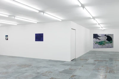 The mountains of Kūnlún, in ancient Chinese mythology, are the dwelling place of gods and fantastic beasts. They are also, of course, an actually existing mountain range. This mystical locale, situated somewhere between reality and myth, provides a particularly apt window into the practice of Michael and Chiyan Ho. The duo studied architecture at the Architectural Association in London before developing an idiosyncratic painting practice that involves pushing specks of acrylic paint from the back of the canvas to the front to form the backdrop, then switching to oil to paint the figures on top. In this laborious process, marked by both formal ingenuity and symbolic fecundity, an enigmatic space—one in which ambiguous protagonists lie afloat in nocturnal fields of lush foliage—is called into existence.