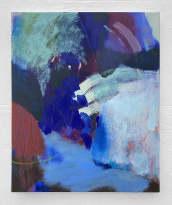 My current paintings dwell on visceral encounters between body and place: the colour change when your eyes are disorientated by bright light; the sensation of moving your limbs through cold water; a rapid heartbeat. I am interested in how the gestural language of painting relates to written language. I paint from my writings, and write from my paintings, creating a circular process of making. These texts become the titles of the works and form publications.