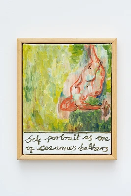 Kim Booker, Self Portrait as One of Cezanne's Bathers, 2021, Acrylic and collage on canvas in wooden frame,
