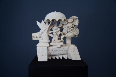Central to the exhibition is Overgrown House (2020), a steel structure which takes the form of a three-metre-tall abandoned house, with growing ‘vines’ sprouting from the ground, consuming or reclaiming the structure. A recurring theme in Kaur’s work is protection and defence. A home is a place of comfort and shelter, yet with Overgrown House, the walls and roof have been lost - opening it to the outside world. Kaur prompts us to consider two opposing possibilities; is the house left vulnerable to attack or, is it possible the ‘vines’ are further protecting what would be inside the dwelling?