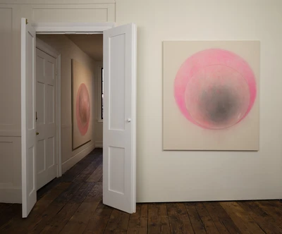 Karsten Schubert London presents Proper Time, an exhibition of new work by Margarita Gluzberg. Taking the form of a series of large-scale drawings, the works feature spheres rendered in pastel and coloured pencil that seem to sit lightly upon the raw canvas ground; yet this ethereal appearance belies the long labour and physical effort of their making.