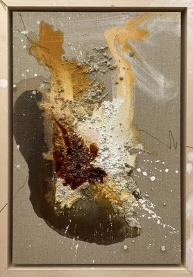 For Anna, the physical creation of her artworks is an intuitive and reactive process, using various materials to create layered, textural paintings. The artistic process is an extension of Anna’s journey, often revealing aspects of her own perceptions that were yet unknown. When painting, she enters into a symbiotic relationship with the materials, responding to the way they behave on the canvas and shaping her vision through their particularities.