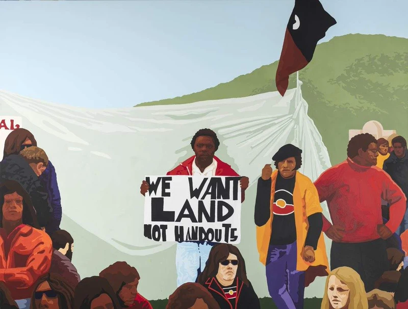 Housed in a tent surrounded by protest signs, Embassy is a space for activism and dialogue in support of Aboriginal land rights in Australia.
