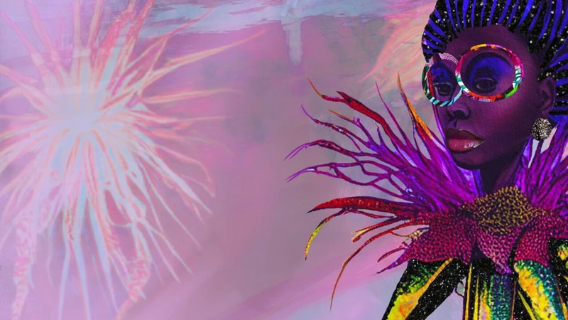 Hassell intertwines themes of afrofuturism, feminism, sustainability, and fashion, employing the metaphor of the onion to symbolise the complex layers that compose identity. The layers on the eyes offer glimpses into postcolonial diasporic futures, envisioning new possibilities.