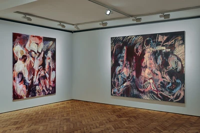 Soldiers are another recurring subject in Granova's work, who was born in the Soviet Union shortly before its transition to capitalist Russia. Found in photo albums of many families on either side of any conflict, the military references highlight the inseparability of the personal and the political. As an artist of both dual Russian and Ukrainian heritage the dilemma of national identity has become inescapable for Katya Granova. She has volunteered extensively to support Ukrainian refugees before launching her own initiative set up specifically to support other artists to apply for a talent visa that allows them to pursue their practice in the UK.