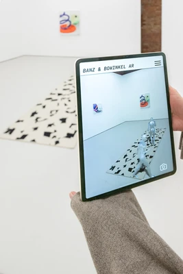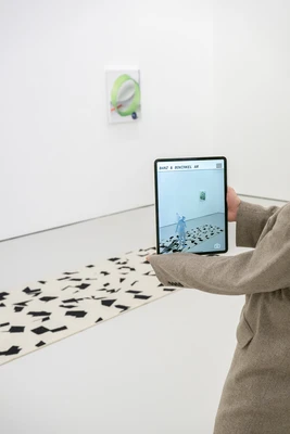 The dystopian vision of a computer-controlled society is at the core of Banz & Bowinkel’s work Bots, a number of algorithmically controlled humanoid avatars that are emerging from physical jacquard-woven carpets via Augmented Reality (AR). The rug placed on the floor reflects the synthesis and abstraction of human behavioural patterns as a formalised social study, letting the avatars act out simulated performances in real time while being confined to the limited perimeters of the carpets. They cannot change the rules of their reality. Enslaved by our devices and computed environments, the work reminds us of the confines of our own digitalised world: systemically charting our activities and nudging our behaviour, the (invisible) bots that surround us daily have us question the nature of our decision-making. Our autonomy becomes a mere spectre of the autonomous systems we created, shifting the distribution of power and politics under our watch.