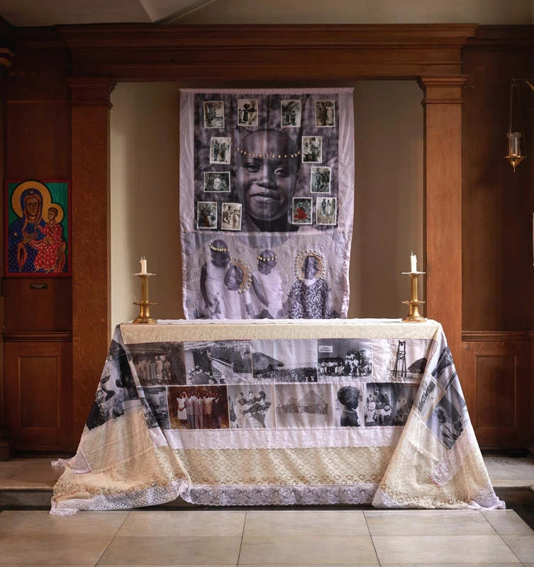 Tuli Mekondjo is exhibiting at St James’s as part of Art in the Side Chapel, a programme curated by the Revd Dr Ayla Lepine, Associate Rector at St James’s and an art and architecture historian in parallel to her role as a member of the clergy. These temporary exhibitions invite visitors to reflect on the transformative power of creativity and faith through the lens of intersectionality.