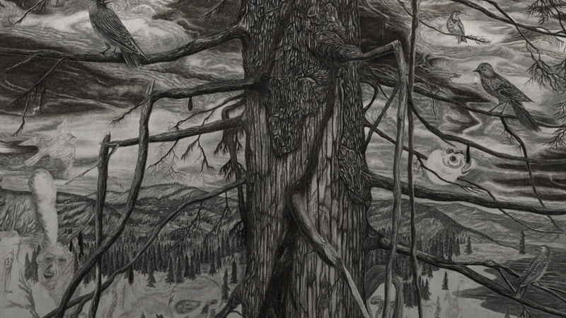Sverre Malling creates work notable for its precision and intricacy, bringing together references to classical art, botany, the occult, psychedelia, folk art and children's illustrations. Jeff Olsson's evocative black and white night-time scenes in charcoal, graphite and dry pastel delve into humans' relationship with nature.