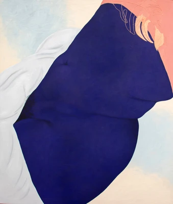 Indigo, the definitive hue of Abe’s oeuvre, plays a vital role in this reimagined landscape. Once a material that defined and confined the Black body through trade and labor, here it is reclaimed and reinterpreted. For Abe, indigo signifies a new tribe — a “breed of Black” that transcends social, cultural, and historical boundaries. Through its depth and resonance, the colour becomes both skin and soil, grounding her figures in a shared lineage while allowing them to flourish beyond it.