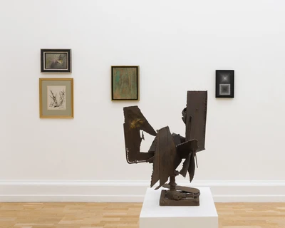 The exhibition presents a dialogue between two parallel modernist movements separated by geography but united by a movement. In Britain, artists such as John Banting, Emmy Bridgwater, Edward Burra, Stanley William Hayter, Roland Penrose, Peter Rose Pulham, William Roberts, Edith Rimmington, and Graham Sutherland were creating distinctive responses to Surrealism, social upheaval, and the reawakening of abstraction. Sculptor F. E. McWilliam’s sensuous organic forms stand as sculptural counterpoints to these visionary painters, while Roberto Matta and Raul Lozza bring a cross-continental energy that foreshadows post-war experimentation.