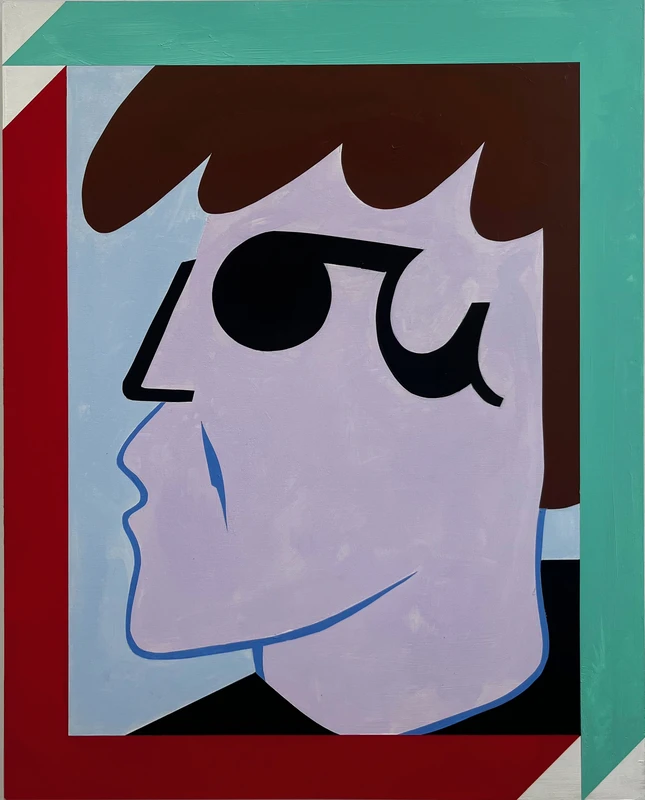 One should not mistake humour for trifle. This is a serious subject,Zakiewicz confirms. The people he chooses to paint are never strangers or arbitrary; they are present in his life, thoughts, and memory, whether he has met them or not. The formal vocabulary that recalls industrial signage, Constructivism, and Bauhaus design simultaneously establishes a sign as affection, a visual system for friendship or human bond.