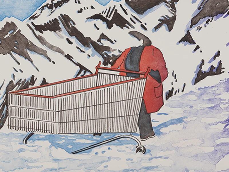 Kørner's vibrant and visually saturated paintings and prints, site-specific murals, sculptures and installations, reveal a fascination with the aesthetics of colour and format, while depicting difficult political and social issues. Figures are accompanied by floating thought bubbles as they roam vast landscapes, supermarkets and beaches, or enter doorways, climb stairs and ride elevators. Kørner will be in conversation with independent curator and writer Fatoş Üstek.