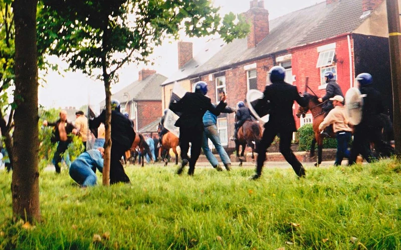 The Battle of Orgreave, staged seventeen years later, was a spectacular re-enactment of what happened that day. Orchestrated by Howard Giles, a historical re-enactment expert, it involved more than 800 participants, including former miners and policemen, reliving the events that they themselves took part in.