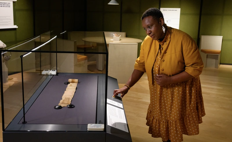 Alongside the medieval scroll are other historical works from the collections, and contemporary artworks by artists Seyni Awa Camara and Tabitha Moses, which reference their own experiences of loss, infertility and parenthood through therapeutic and spiritual art practices.