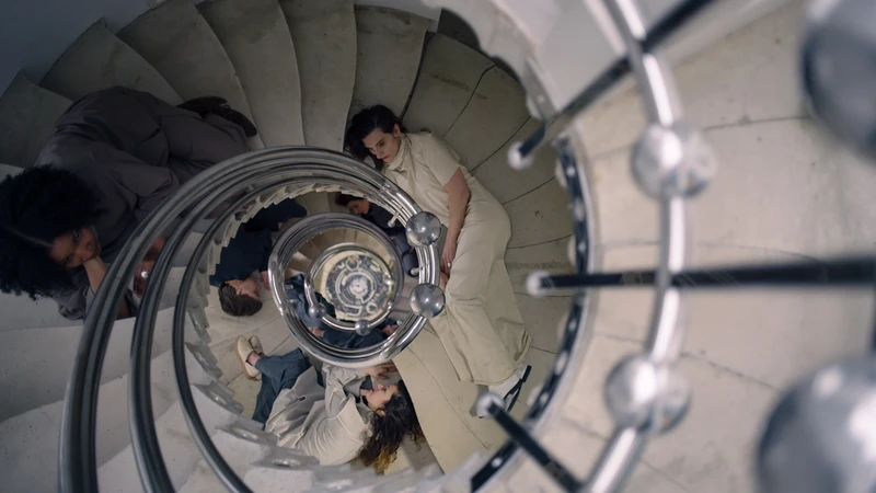 Commissioned by The Cosmic House, the film is part of a site-specific installation currently on view at the house. Taking inspiration from the polyphonous nature of The Cosmic House and weaving in new contemporary voices, Lapelytė and her collaborators (Nouria Bah, Anat Ben-David, Angharad Davies, Sharon Gal, Rebecca Horrox, and Martynas Norvaišas) foreground the mundane and sensory, and invite intimate engagement with the house through their divergent elucidations of the cosmic. In the film, a series of scenes follow the performers as they ponder, commune, and weave new interpretations of cosmic themes. They playfully inhabit the house, drawing out some details and symbols and sliding past others – like the orbit of a singing comet that comes tantalisingly close before arching far away into mystery.
