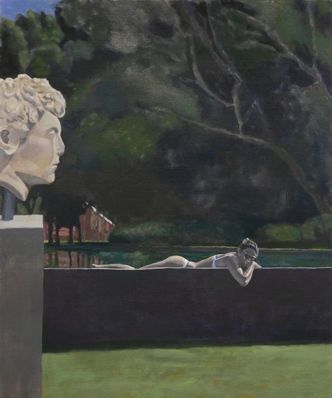 Emil Sands, a London-born painter and writer currently living in New York, explores the complex psychological territory between seeing and being seen. Through a focused exploration of physical form, gesture and the ways in which we present ourselves, consciously or not, Sands paints a world rich with both classical allusion and contemporary engagement. His paintings are at once portraits and landscapes; mindful of the codes and orthodoxies of both genres, he plays with their conventions while addressing themes of vulnerability and exposure drawn from personal experience.