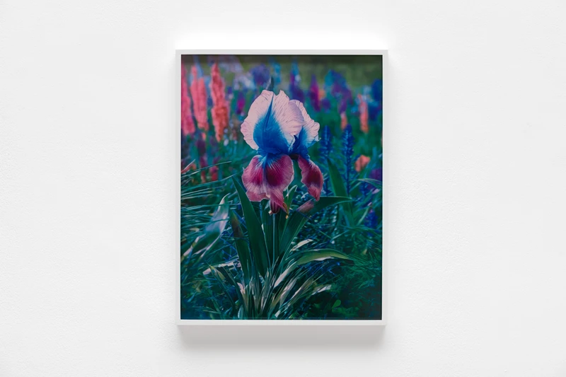 In a new series of photographic prints, Oppenheim revives a now- extinct variety of iris named Monsieur Steichen, which was created in 1910 by an amateur botanist as a tribute to Steichen. There are no known photographs of Mons. Steichen, nor extant examples of the flower. Oppenheim’s works bring this flower back to life using photographic techniques from two very different eras: dye transfer, which Steichen himself used in the 1930s and 40s, and artificial intelligence. Through AI technology, Oppenheim created images of hypothetical hybrids by merging images of the two varieties of iris that were originally used to create Mons. Steichen, creating possible offspring from each parent variety. She then produced analogue prints of the AI generated images using the labour–intensive and almost entirely extinct process of dye transfer printing. Using her own 'incorrect' colour combinations, Oppenheim creates a vast range of possible Mons. Steichen that explores the concepts of both genetic and photographic verisimilitude.