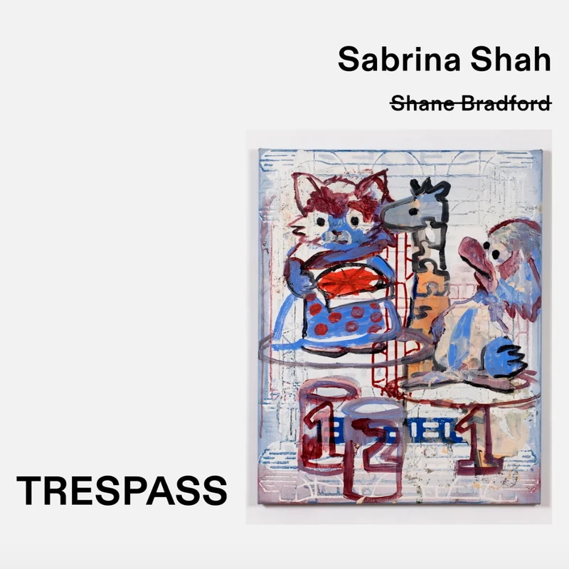 Trespass is an unusual collaboration between Union curator Shane Bradford and painter Sabrina Shah. The project is intended to test the jurisdiction of creative authorship in a traditional gallery setting. While these works are firmly Shah’s painting, the fact that they have been painted on top of abandoned former works by Bradford defines the series. Doubts arise. Questions are posed: what does it mean to trespass? Where is the consent?