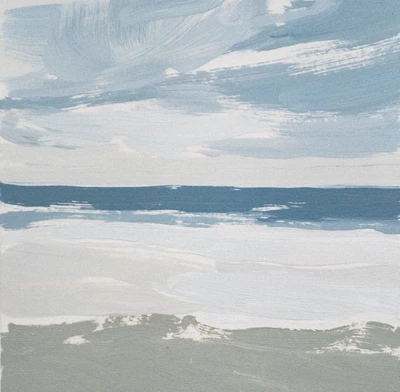 Working directly from the landscape, Woods uses single brushstrokes and carefully mixed hues to evoke feeling rather than description. Her works on paper function as both exploration and record – testing composition, atmosphere and tonal relationships that later inform larger paintings. She is drawn to overlooked moments: mid-winter light, shifting skies, and subtle transitions between sea and land along the west coast. Soft greens, dusty pink sunsets, and nuanced blues sit alongside warmer notes of Naples yellow, creating works that are gentle yet confident in their forms.