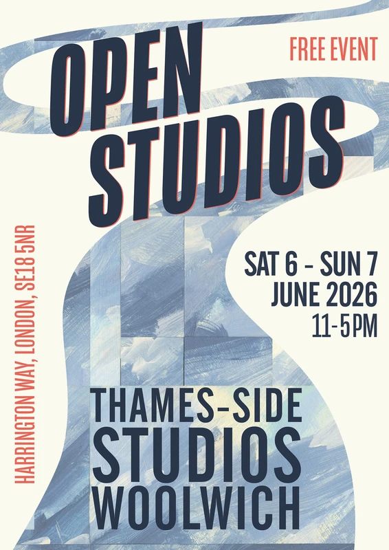 For the past three years, we've been growing the Woolwich Open Exhibition. 2026 marks our fifth year as we invite studio holders who plan to open their studio over the weekend to submit one piece to the Thames-Side Studios Gallery. All submissions are accepted. It's a great way to showcase the pieces created here, and hopefully provides visitors with a focus when exploring the site.