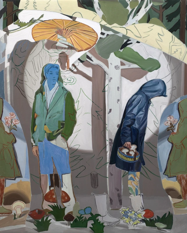 Narratives in Herbst’s paintings unfold slowly and often fragmentarily. Details revealing through prolonged looking, a sort of 'delayed discovery' that invites attentiveness and return, almost like what happens upon repeat listening to a song, or returning to a beloved novel time and again, where subtle details and continue to reveal themselves and meaning, a little like the childhood whispering game of telephone, is ever-evasive, alluring, and just a little out of reach.