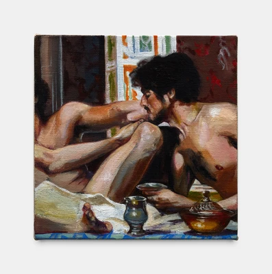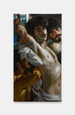 Gian Manik (b. 1985) is an Australian painter living and working in Melbourne (AUS). His practice seeks to decolonise European and heteronormative art-historical narratives, complicating traditional binaries such as native and foreign, local and global, self and other. Drawing on his research into Orientalist and queer portrayal in both art history and popular culture – including fashion, music, and performance – Manik challenges entrenched racial, ethnic, and phobic hierarchies that often permeate society and traditional pictorial spaces.
